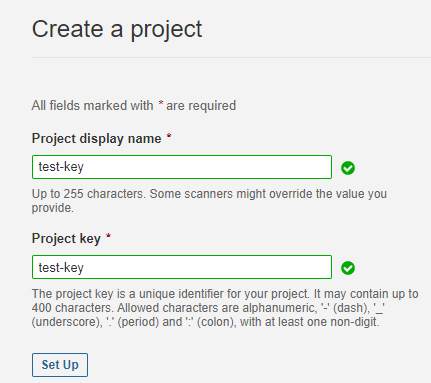 - The sonar report will automatically infer the project name from your code. i.e., the final report will not have test-key as the project name but your actual project name.
