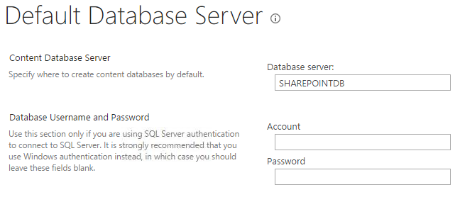 Here, you can add a default Database Server which will act as default for the complete Central Administrator.