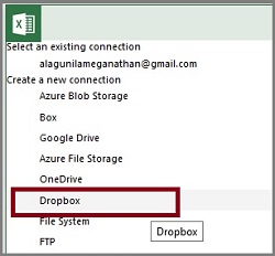 We will choose the Dropbox option here to create a new connection.