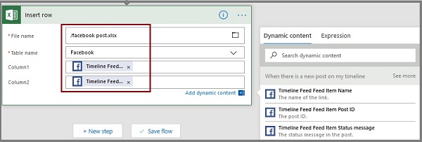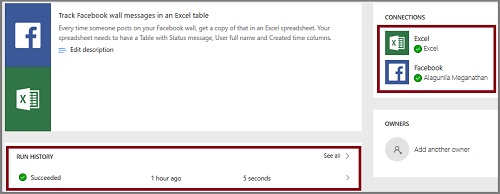 Here, we are building a flow that can save and track the Facebook wall messages in an Excel table automatically.