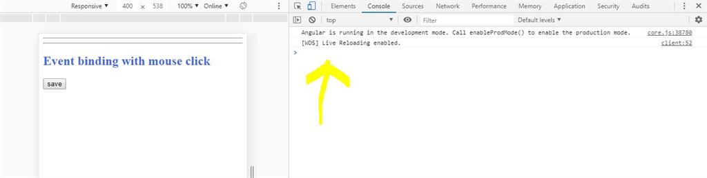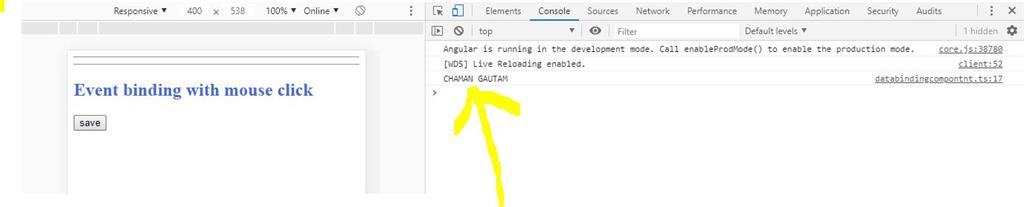 Angular provides us with other types of binding, i.e., event binding, which is used to handle the events raised from the DOM like button click, mouse movement etc. Let’s understand this with the help of an example.