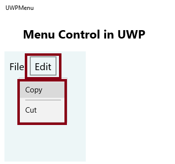 Now you have successfully tested Menu control in XAML and UWP environment using Visual Studio 2017.