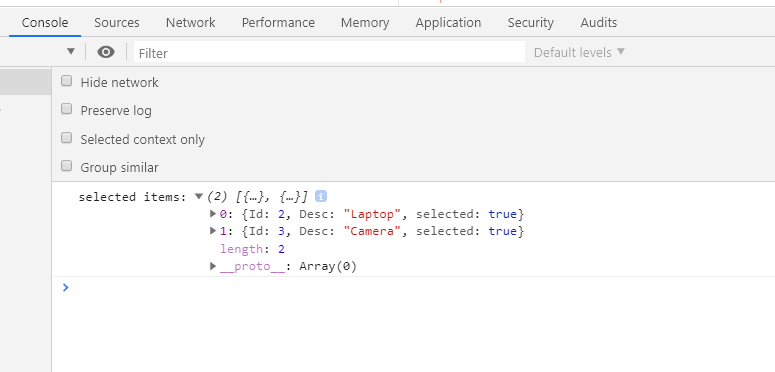 There was an issue with the initial release of this control which was not passing objects values in items array. This was fix as part of Release 1.1.18.