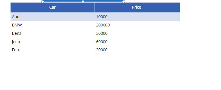 Here, I have created a Table with sample collection on APP start of the PowerApps Application.