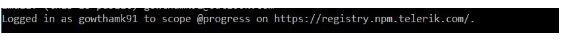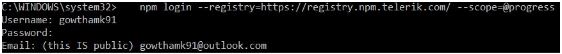 npm login --registry=https://registry.npm.telerik.com/ --scope=@progress