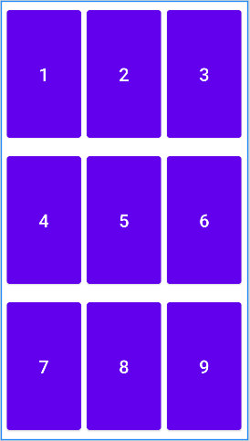 In this example, first we take a linear layout with orientation vertical and set weightSum="3". We take weightSum value three because we want to divide our whole screen into three equal parts in vertical order. Now we used three inner linear layouts with orientation horizontal. Since we are dividing the height of the whole screen so we need to set layout_height as 0dp of each inner layout. In each inner layout, we use the layout_weight attribute and set its value to one. Now our screen has been divided into three equal parts. In each linear layout, we take three buttons and again apply the same concept of weightSum and layout_weight. We take buttons in horizontal order so this time we are dividing the width so we set layout_width value as 0dp of each button in the inner linear layout.