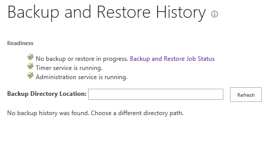 You can have your Farm back up configured or restored files for various purposes, for example, to save a copy or to restore it to another Server. Here, you can view backup and restore history on this Central Admin, which might have run as jobs in the past.