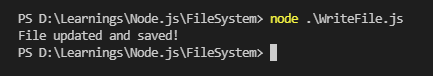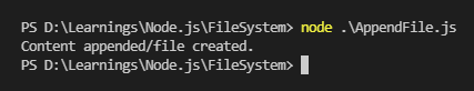 As we already have the description of the function fs.appendFile() in the create file section, let’s have a look at an example.