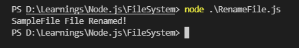 fs.rename('SampleFile.txt', 'SampleFileRenamed.txt', function (err) {