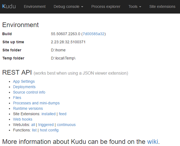 Thankfully, Azure sites feature a service called Kudu. Kudu is the engine behind just about everything with regards to Git-based deployments on Azure, but it does so much more.