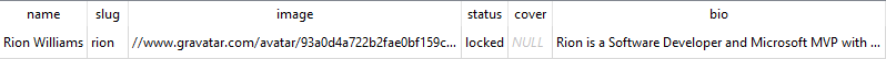 As you can see the status field is set to locked. That's no good. After looking at Ghost's documentation, it seemed that a quick SQL query could fix this up with an UPDATE query.
