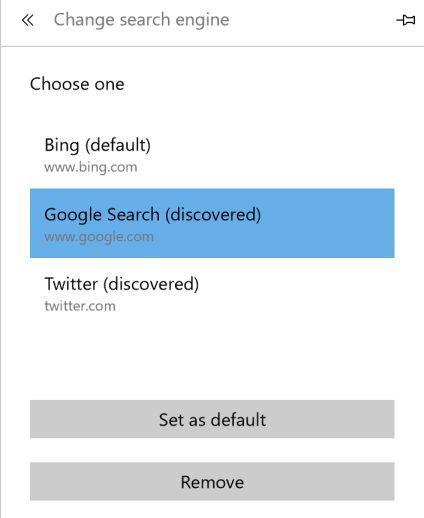 Now, go back to the Advanced Settings of Edge, you will see Google in the search engines listing now.