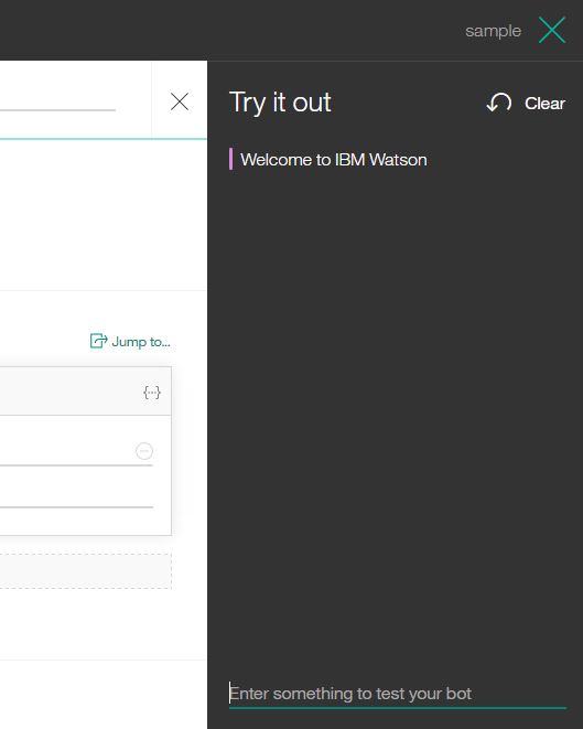 If all the fillings are filled, click Chat button, which is available on the top of the screen. Now, chat Window will display and the conversation automatically starts. You will get a response as Welcome to IBM Watson.