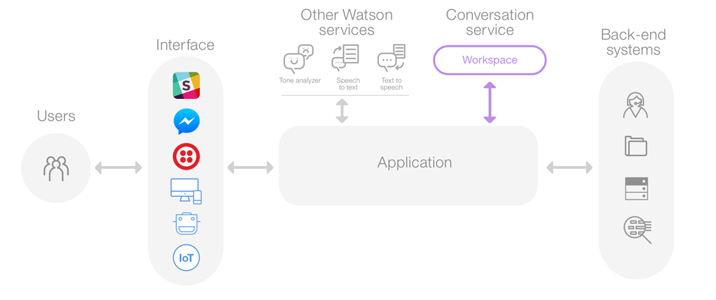 But in this article, we are going to use Watson language service to create a simple conversation application using IBM Bluemix. The diagram given below shows overall architecture of IBM Bluemix Watson conversation service.