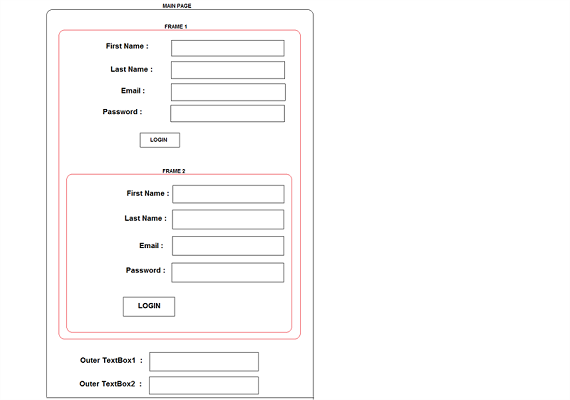 From the image given above, we have taken two different frames, which are within an iframe1. We have used another iframe i.e. iframe2. Whenever we want to automate normal controls without any containers like div or an iframe on a Webpage, it will be easy to automate just by using their control properties. Whenever we have controls within an iframe and this iframe is available in another iframe, it will be difficult to identify & automate an iframe and its controls.