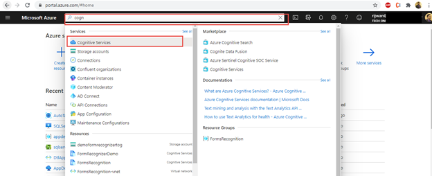 We can search with Cognitive service or computer vision as illustrated below. In this demonstration, we will be using computer vision, an azure cognitive service.