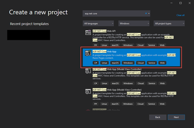 Quickly, we will create a new asp.net core 5.0 razor pages project with Visual Studio 2019.