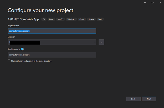 Then again, let us create asp.net core 5.0 project to implement computer vision.