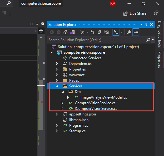 We will follow the folder/files structure as shown above. Then, we have added interface for computer vision service.