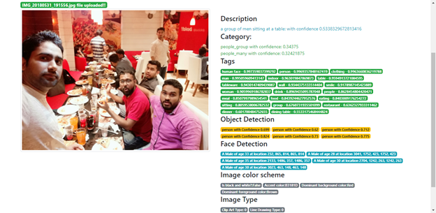 Now, our image analysis solution is ready to use. Azure cognitive service has made it comfortable to develop AI solutions without having deep knowledge on Artificial Intelligence or machine learning. Using these services, we can include AI features in our applications effortlessly. Additionally, there are numerous other services that can be implemented in any applications regardless of framework, platform, or language to build AI features.
