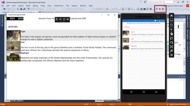 Now, you have successfully tested Image Cells in Xamarin.Forms application for cross-platform application development, using Visual C# and Xamarin.