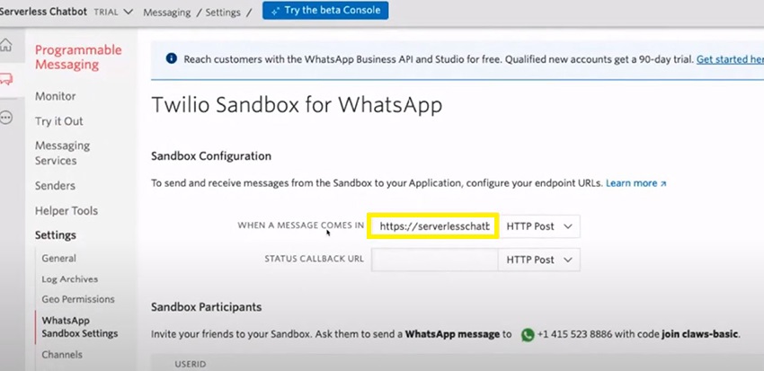 Let us learn to setup our Twilio to connect to WhatsApp Bot.