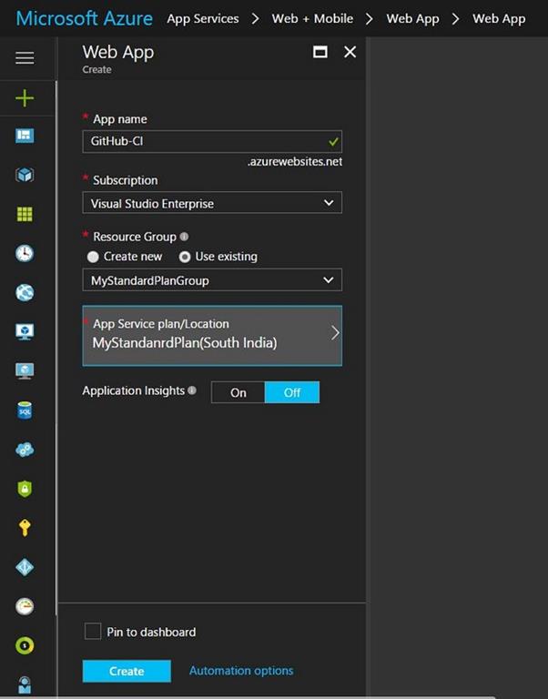 Create a Web app in Azure for deployment