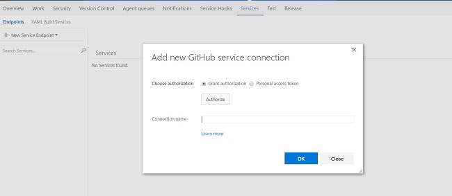 Create a Service in VSTS