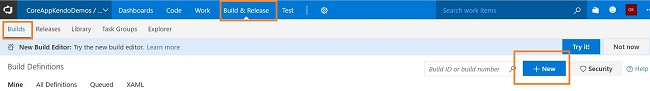 Select Build & Release -> Build from the menu. Click New Build definition.