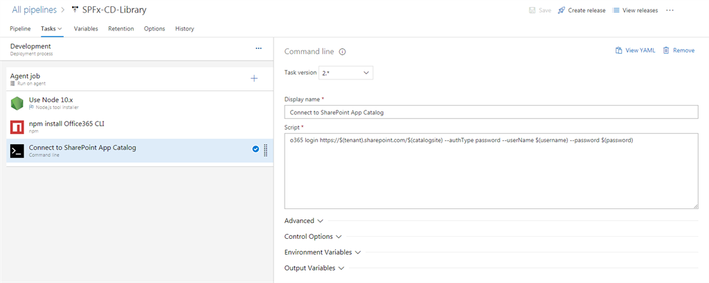 - o365 spo app add -p $(System.DefaultWorkingDirectory)/SPFx-CI-Library/drop/spfx-library.sppkg --overwrite