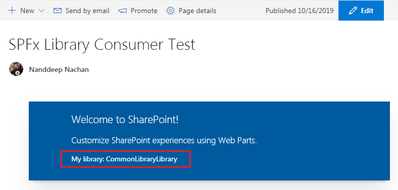 Add the web part to the SharePoint page. The web part should be able to make a call to the library component.