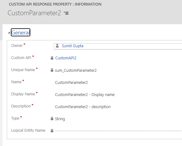 | Execute Privilege Name | Schema name of security role | It helps to restrict calling of Custom API only through specific roles |