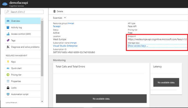 Replace the Key and Endpoint using Face API on the Azure portal.