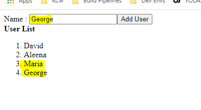 The default name will come as earlier. But if type any name in textbox and click Add User button, the name will be added to the store and get displayed on browser.