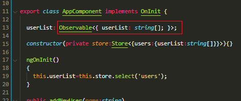 Since the Observable is a generic type, we will provide the format as same as the format of our state object. ie, an object with key ‘userList’ and value as string array.