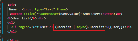 No worries! Angular has a solution for this. We can use the async pipe to subscribe the userList observable.