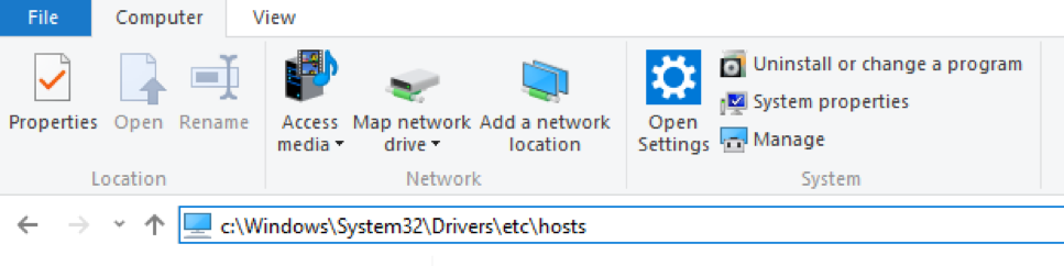 Browse the file : c:\Windows\System32\Drivers\etc\hosts.