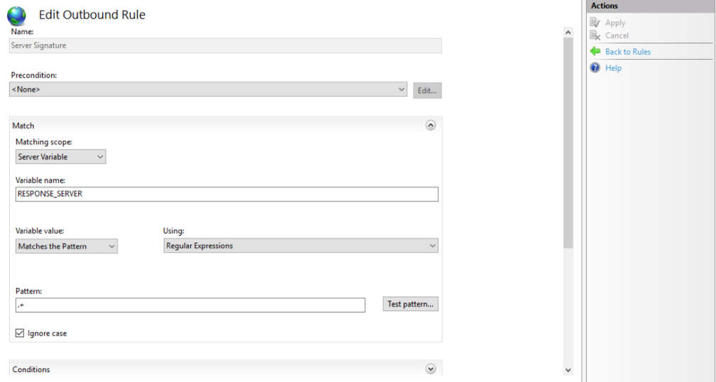 From security aspects, it is important to turn it off. By default, it is set ON. Here, we will rewrite the server signature with outbound rule in IIS.