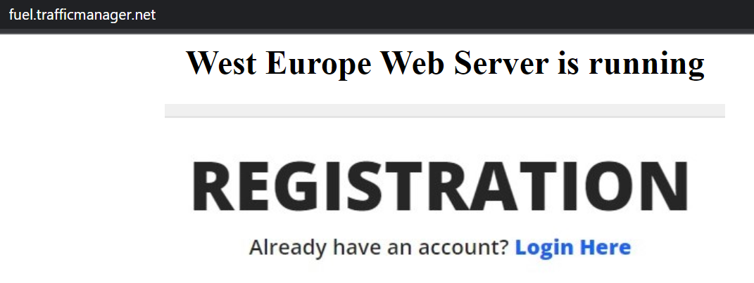 When we refresh the web browser, the Secondary site (Failover site) will be automatically activated, and we will see that the secondary site is online. The primary endpoint was unavailable, but the traffic was routed to the failover endpoint to allow the website to remain live.