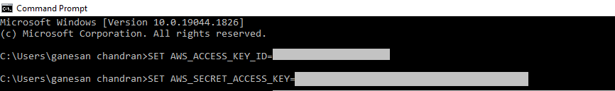 SET AWS_SECRET_ACCESS_KEY=(your secret access key)