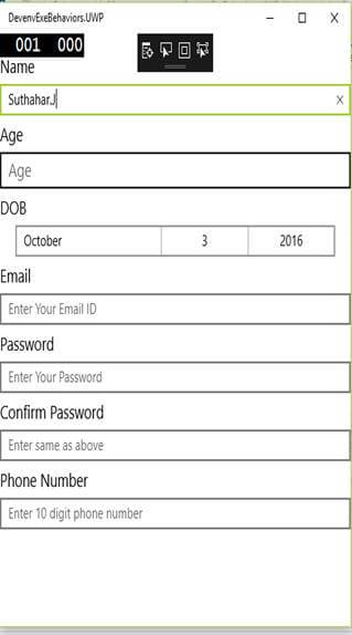 The DOB validation Behavior is added into DatePicker control. We can re-use this Behavior to Date Picker control.