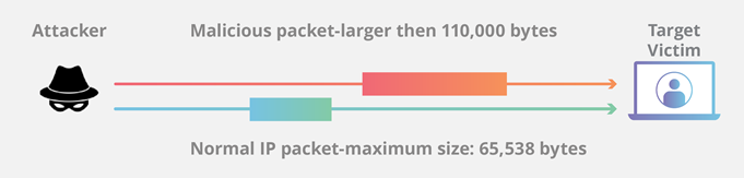 Denial of Service (DoS) attack, in which the attacker aims to disrupt a targeted machine by sending a packet larger than the maximum allowable size, causing the target machine to freeze or crash.