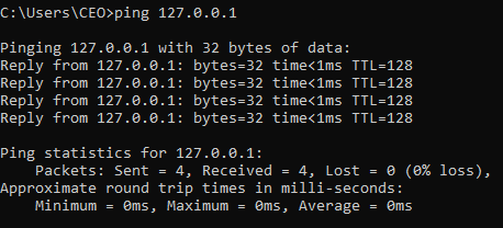 - Ping 127.0.0.1 (127.0.0.1 is a loopback address)