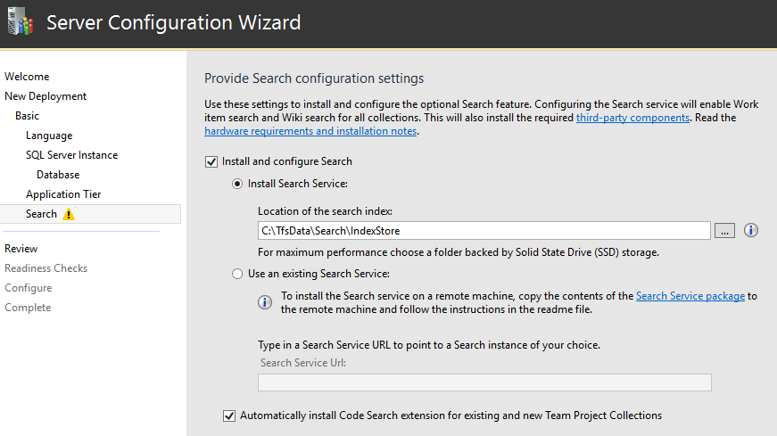 We can choose the deployment scenario also. If you want to install more advanced features like reporting, you must have SQL Server Reporting Services enabled on your machine. I am choosing "Basic" deployment this time.