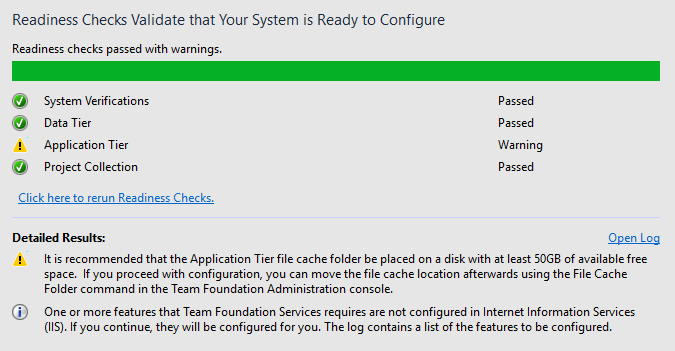 Please note that we have only one warning now. Other validations are passed. We can ignore that warning as it shows a minimum of 50 GB of free space is needed for caching. We can take care of it later.