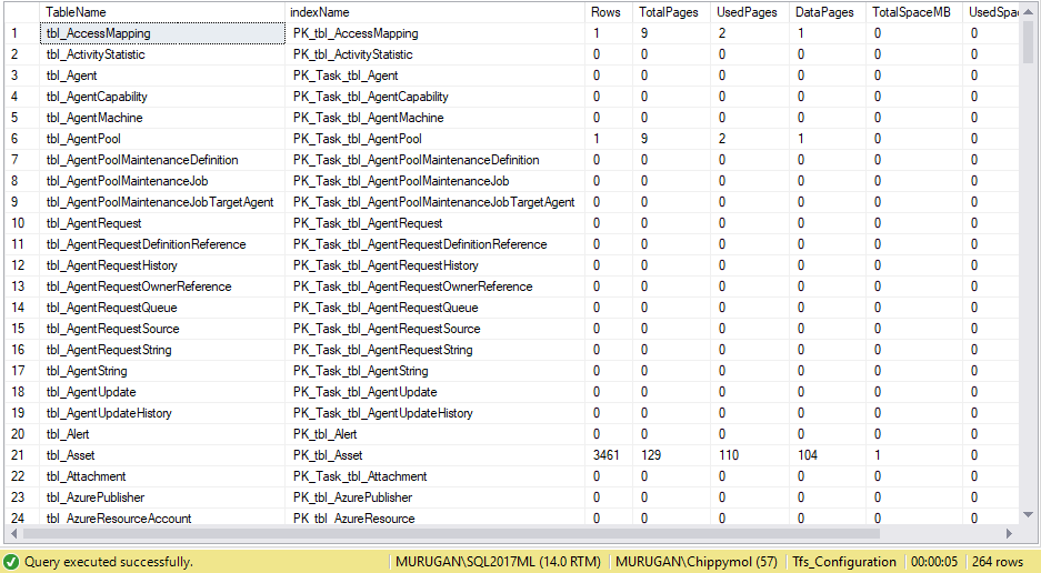 You can see there are 264 tables created in this database. There are some stored procedures also created in this database. These objects are used for controlling the TFS workflow.