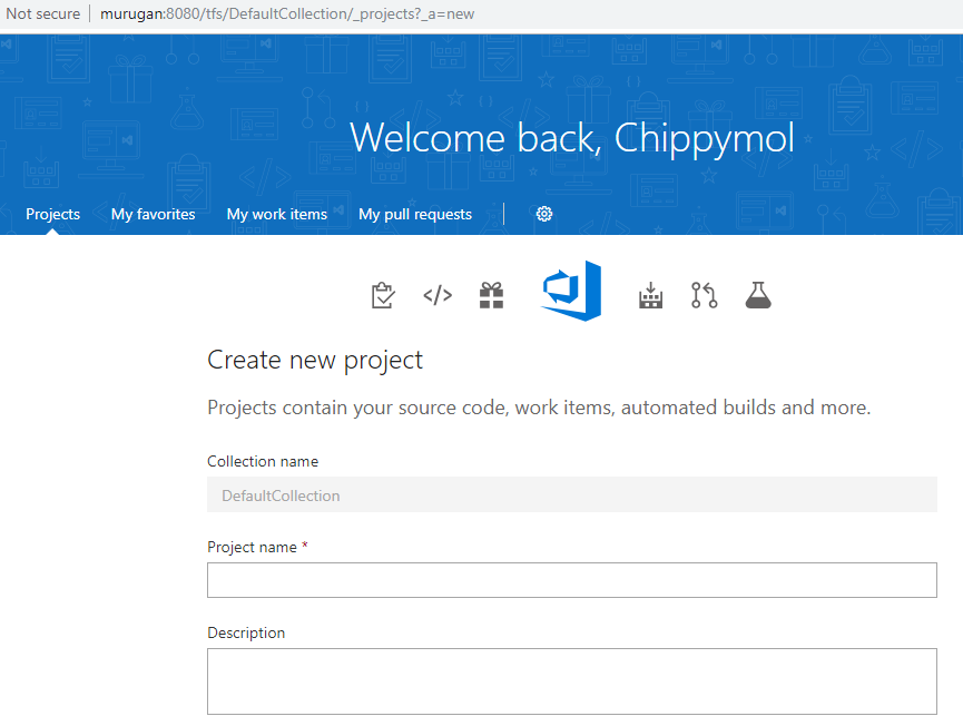 We can simply open the website and see that our TFS application is running successfully now. We can create any number of projects and collaboratively work with other people also.