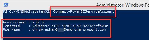 Once you use this command, it will ask for the credentials of your Power BI Service account.