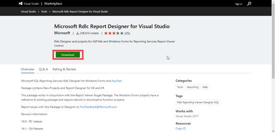 - Installing from "Extensions and Updates" in Visual Studio 2017. Go to Visual Studio’s Tools Menu > Extensions and Update > Select Microsoft RDLC Report Designer and Reporting Services Project for the Visual Studio.