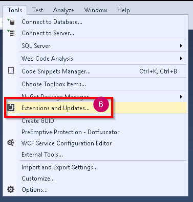 In your Visual Studio, click Tools - Extensions and Updates as shown below.